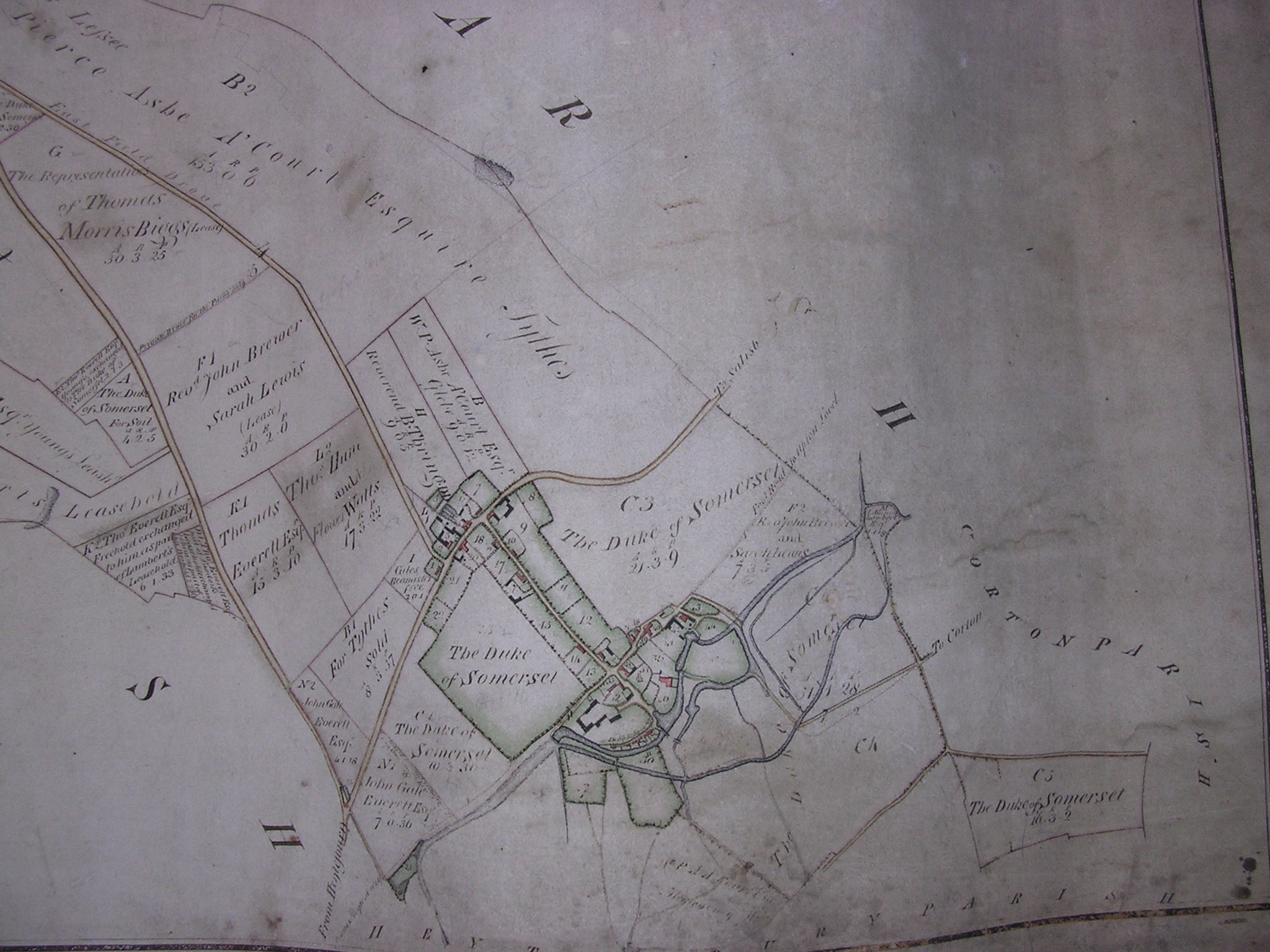 Images from a large hand drawn Enclosure map of the parish of Knook,