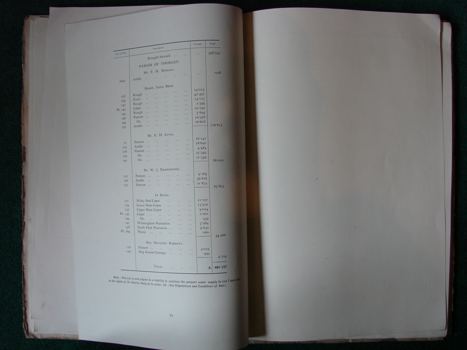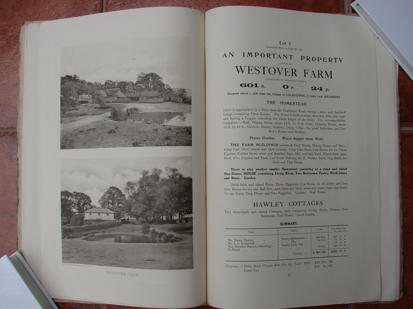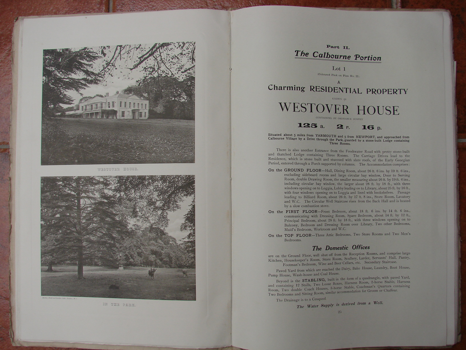 Printed list of sale particulars for Thorley. Freshwater and Calbourne.